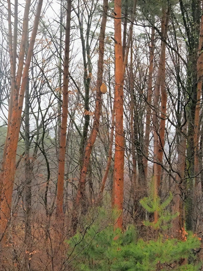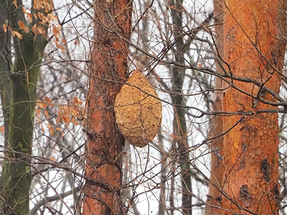 落葉すると、それまで葉で隠れていたモノが見つかったりしますが…あんなトコにキイロスズメバチの巣!全く気付かなかったな。