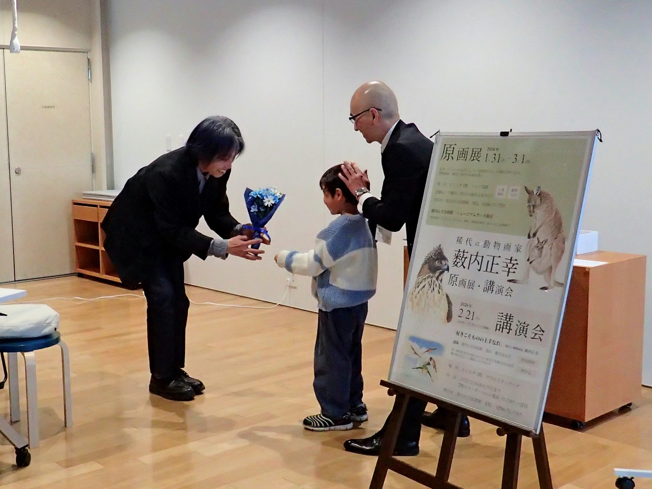 で、質疑応答も終えてオシマイかな…と思ったらさくらす館長から「急遽こうなりまして…」的なお話があり、何かと思ったら何と最後にお花を!それも(竜)の髪色にあわせて青色でまとめたという(笑)。こんなサプライズ、嬉しいに決まってる!