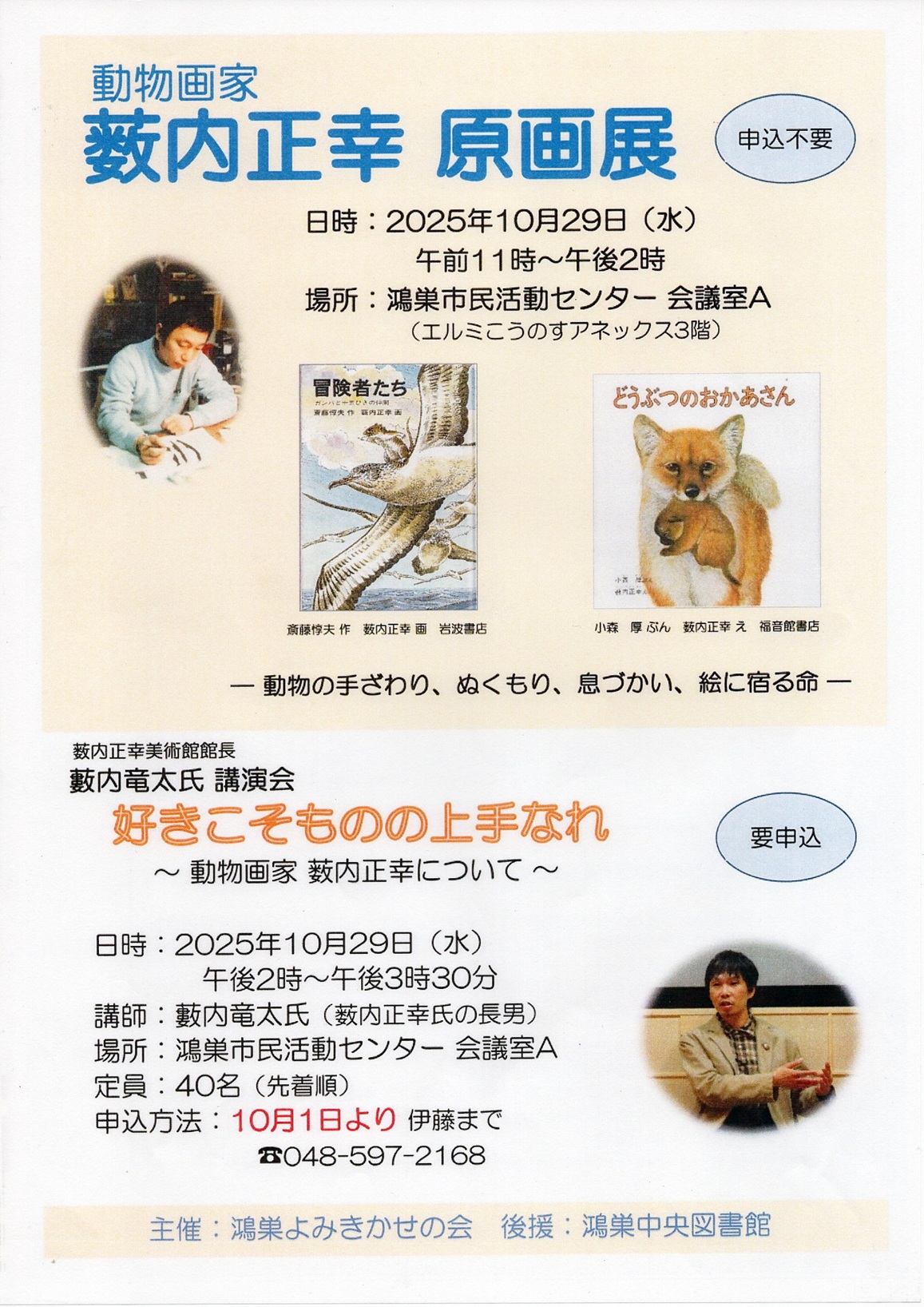 鴻巣での講演会の申し込みが始まりましたんで、ご案内~。