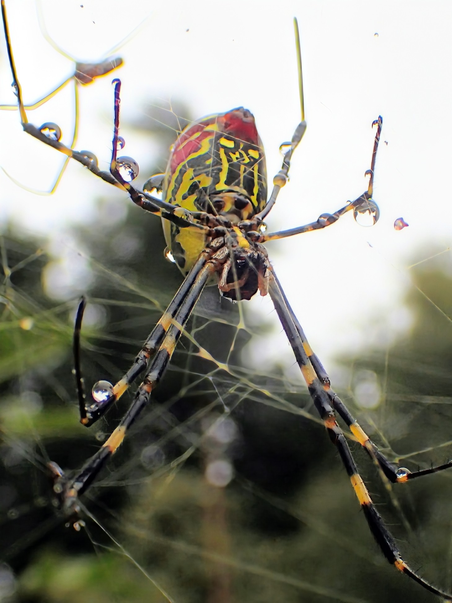 ジョロウさま、配色が踏切。腹部の赤色は警報灯みたいだし、脚なんて遮断器そのものだし。