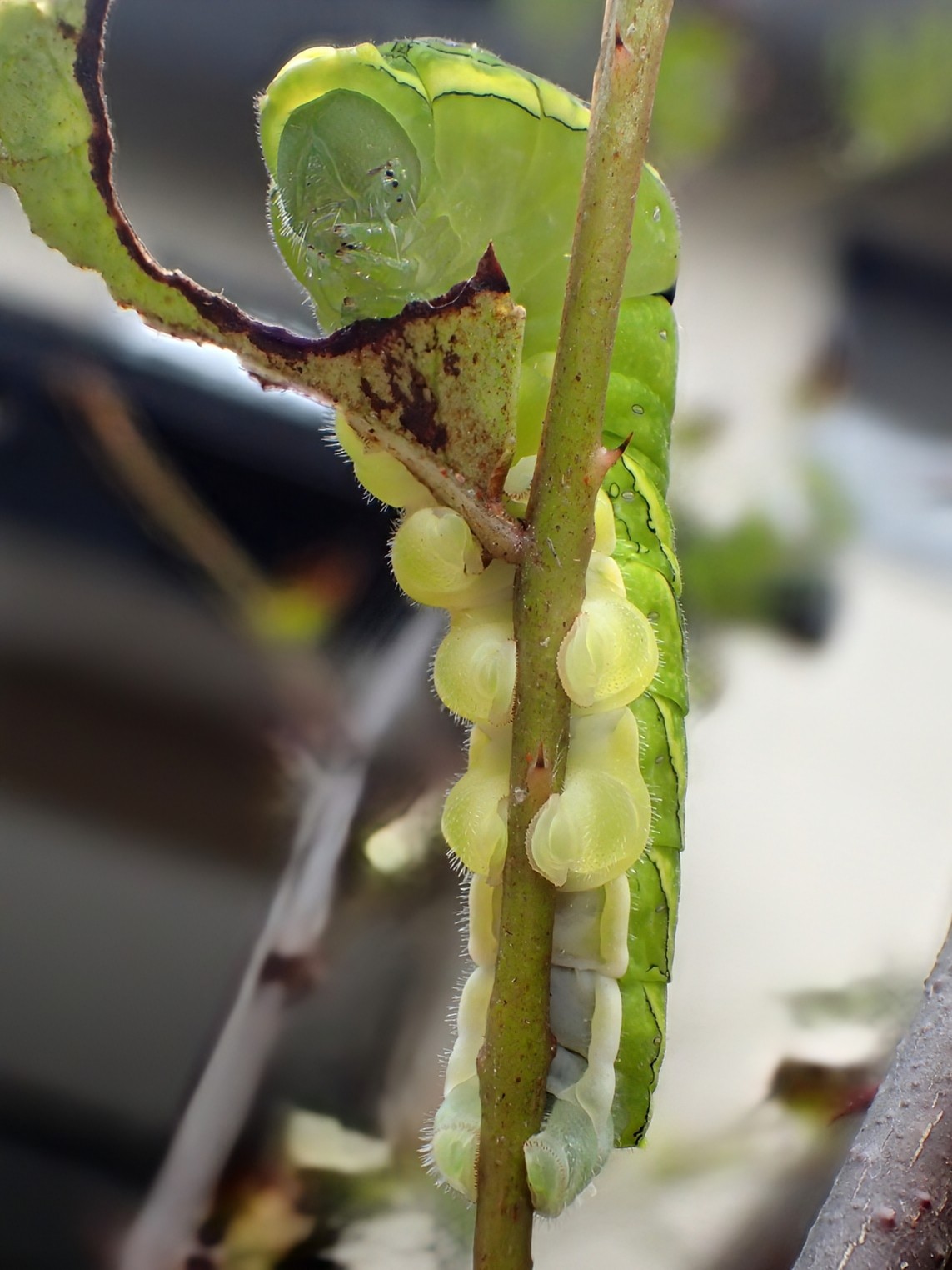 自宅のサンショウはいつもナミアゲハばっかりで、カラスアゲハがやってきたのは初めて。だもんで嬉しくって、今日もカラスっ子の観察。