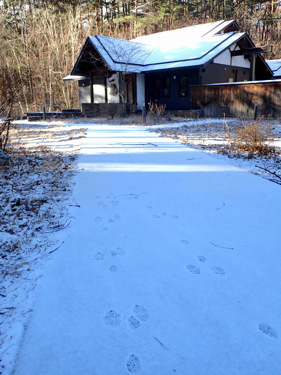 白くなった朝はね、足跡が楽しい♪