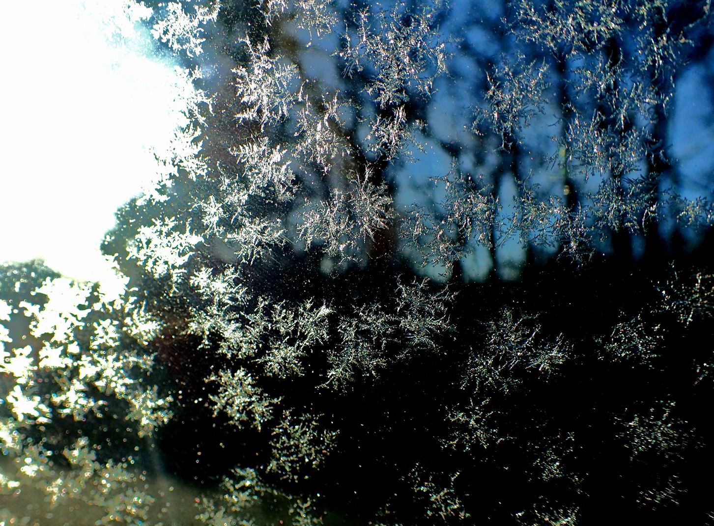 朝、クルマのガラスに霜の花。