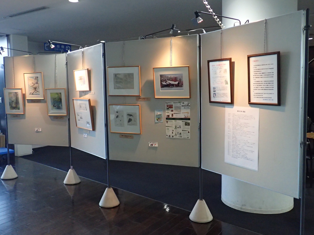 本日は美術館をゴメンナサイして岡崎で西三河野鳥の会主催による原画展示/講演会でした。展示スペースの関係からそんなに多くの画は出せませんでしたが、それでも伊良湖岬の風景やStrix誌の表紙など、野鳥関係の方はニヤリとするチョイスにしてみましたよ。