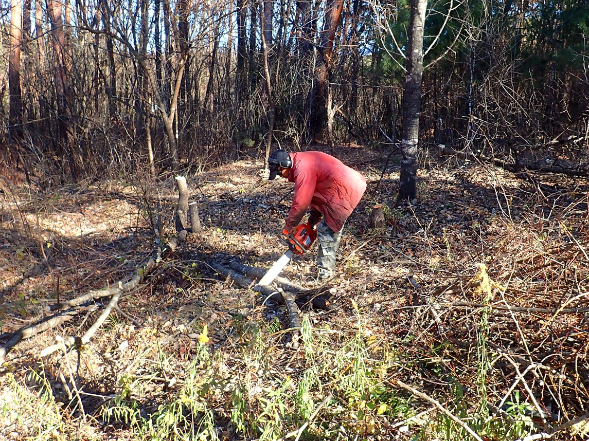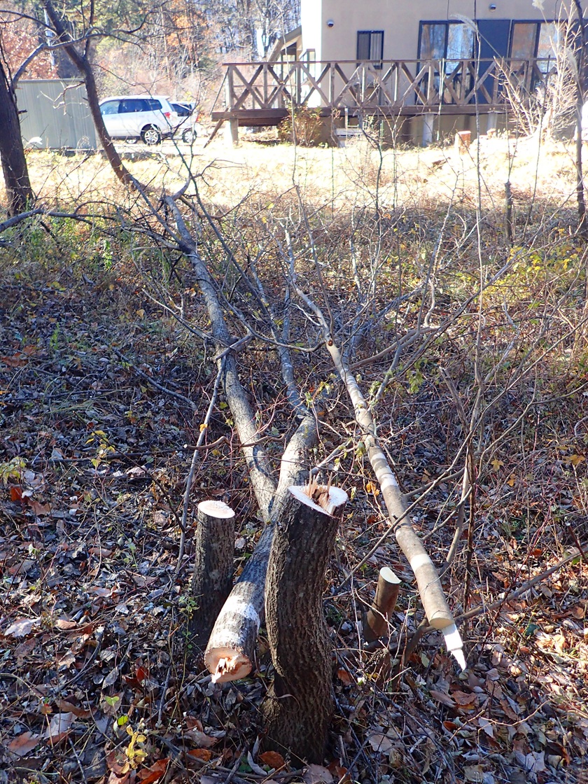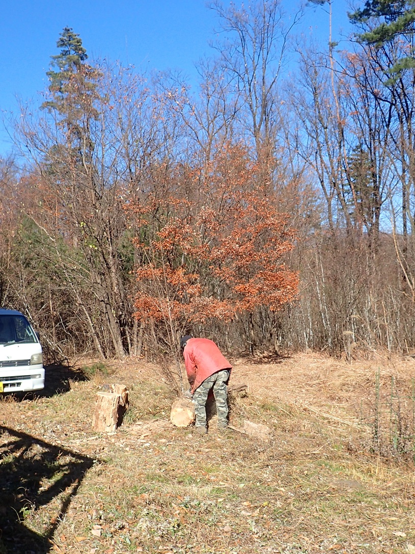 今日は相当冷え込むって聞いてたから覚悟してたんですが、それほどでもなかったですね。天気も良いし、こういった日は外作業だー。草刈りはキイロスズメに中断させられてたし、先日の倒木もそのまんまだったし。