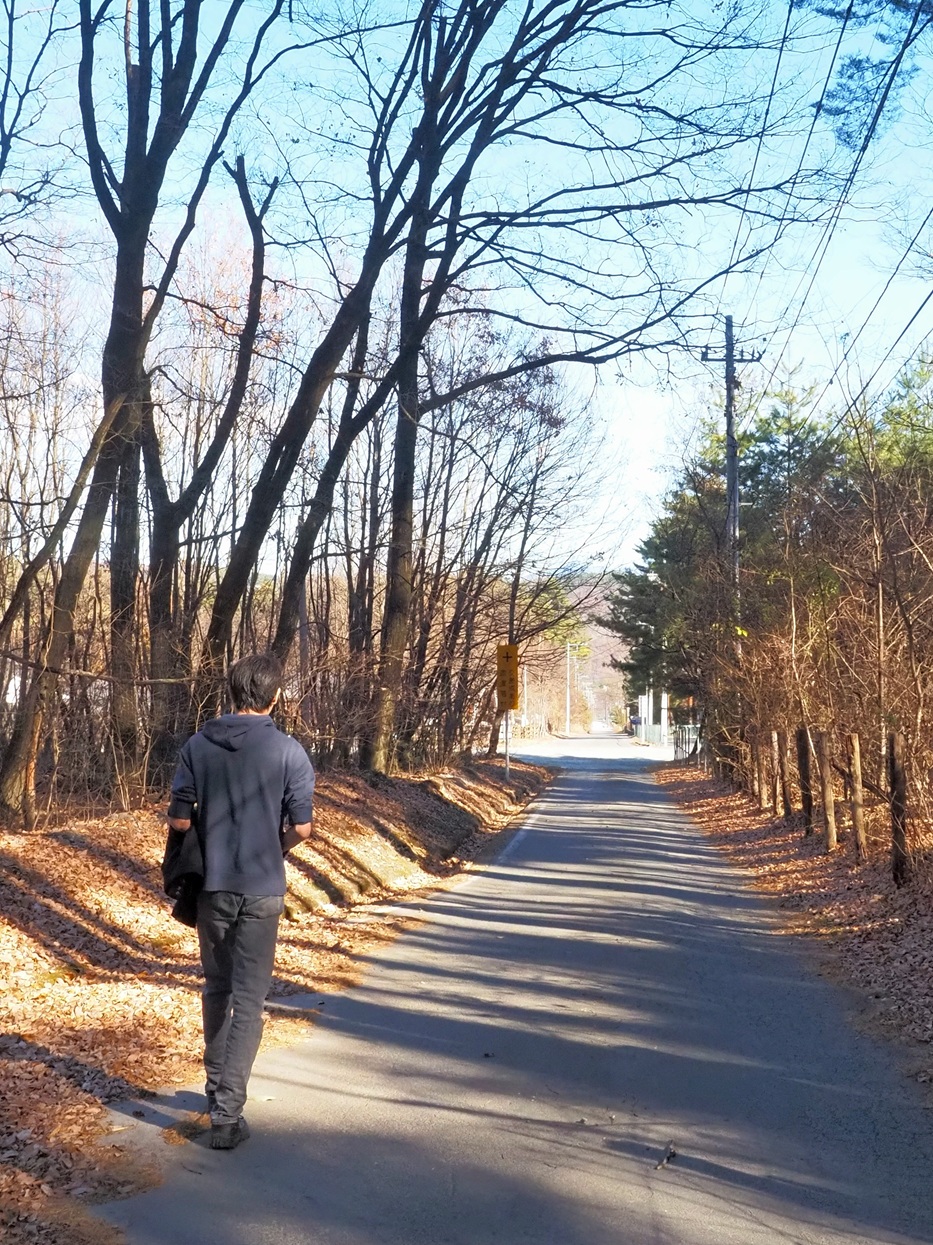 お客さんでね、駅から美術館まで歩いてくる方は時々いらっしゃるですよ。けど、歩いて駅に行った方は…いないんじゃないかな? 距離は7kmほどなんですが、何せ高低差が200m近くあるので。ということでね、ムスコと歩いてみた!