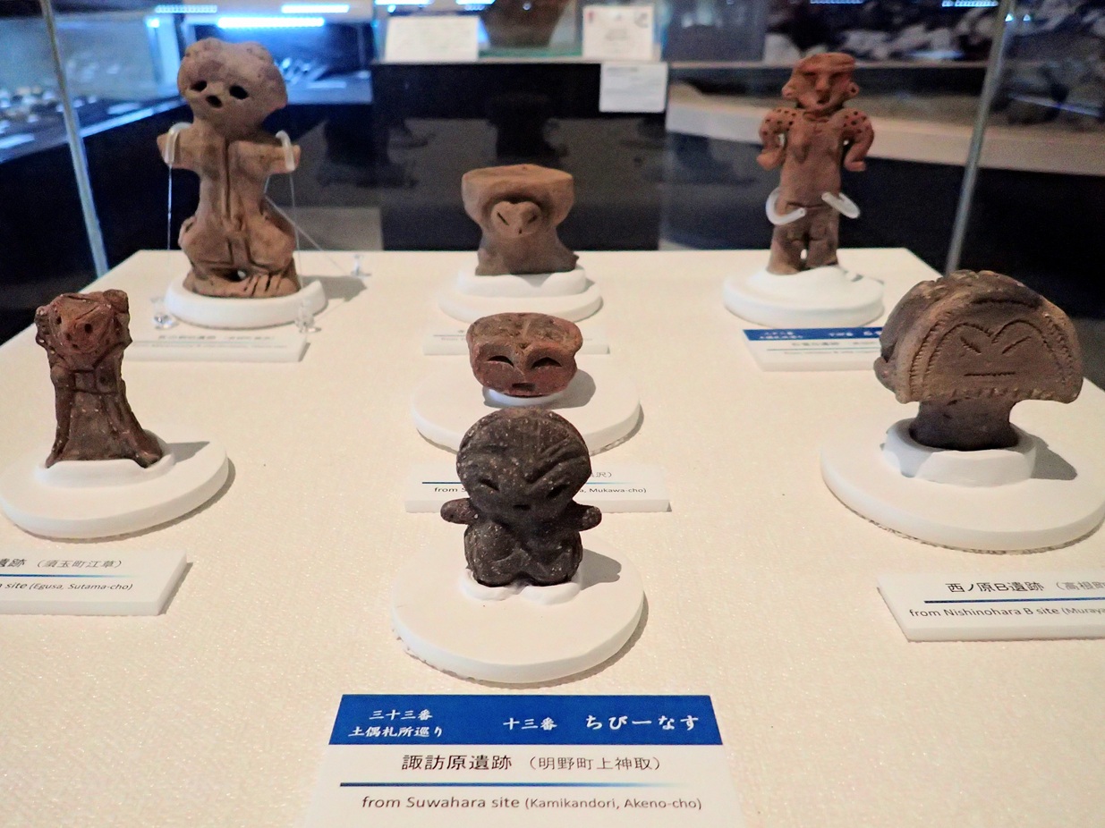で、せっかくなので近くの北杜市考古資料館に。企画展示「北杜市遺跡調査速報展」も面白かったけど、ここは常設展示も見応えがあるんですよね。世間では茅野市尖石縄文考古館収蔵の「縄文のビーナス」が有名ですが(国宝指定!)、ここにもビーナスがいるんです!「ちびーなす」が!