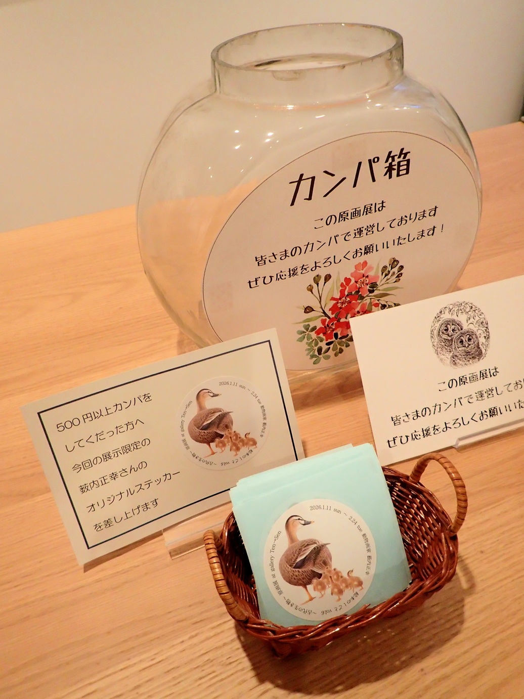 ところで原画展は入場無料ですが、受付にカンパ箱を設置しております。皆さまのお気持ちが今後の7回目、8回目の開催とつながりますので、ぜひぜひご協力をお願いいたします。まぁその頃までウチがあるかどうかは別の話ですが。ちなみに500円以上のお気持ちをいただいた方にはオリジナル・ステッカーを差し上げております。今回の会期も記された「超限定」のシロモノです!