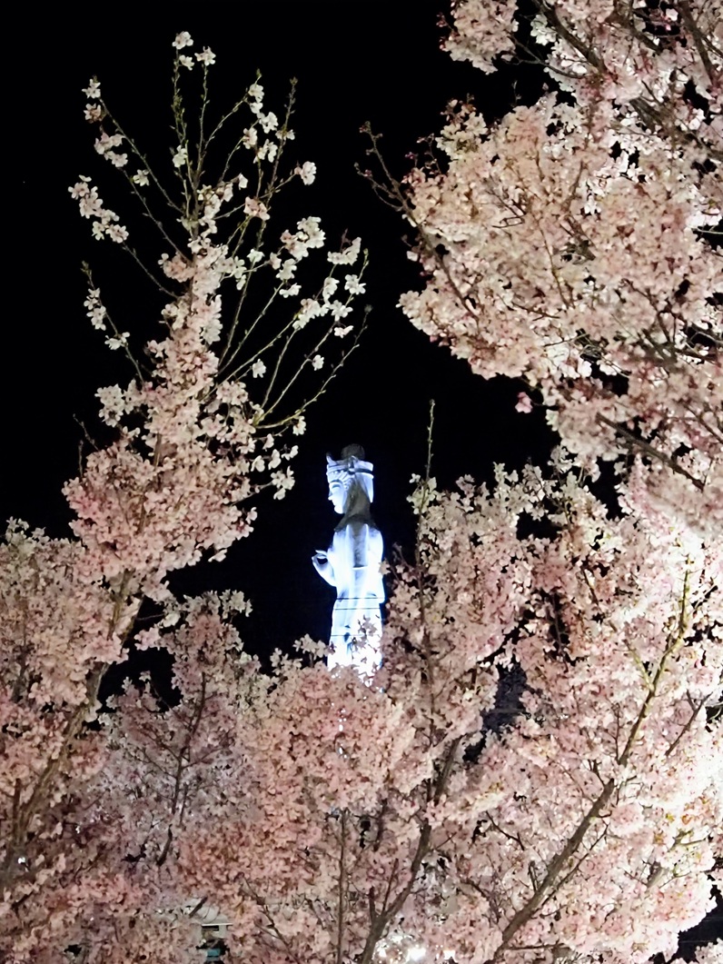 韮崎駅前の桜がほぼ満開~。